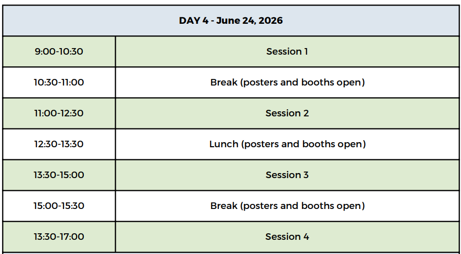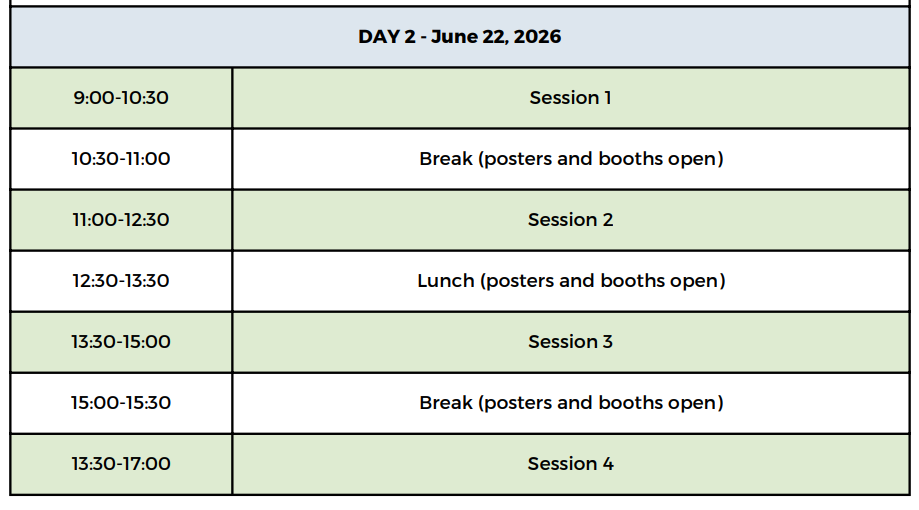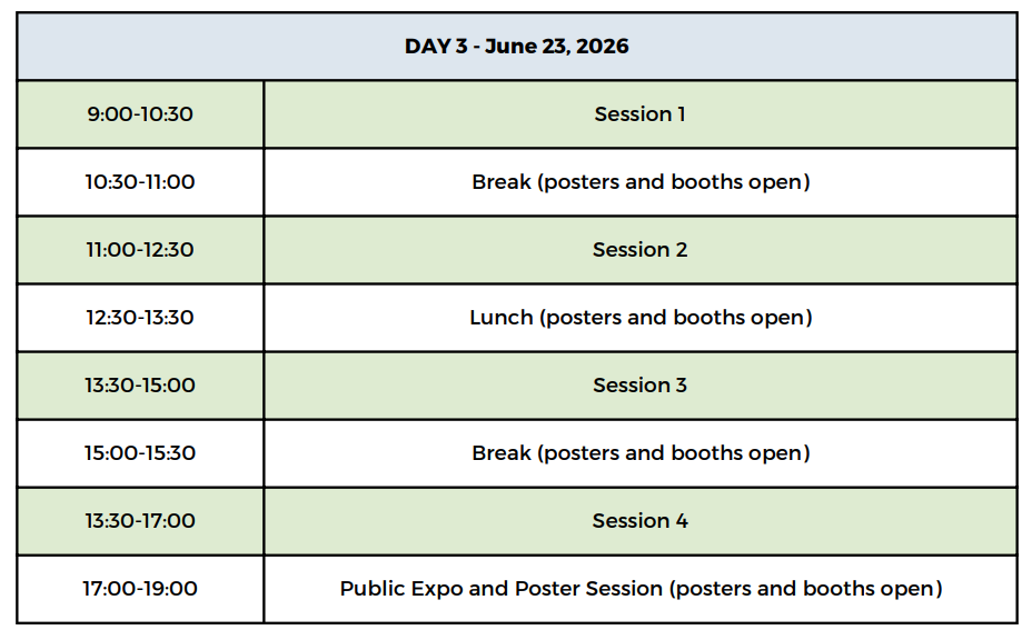 Poster set-up Monday June 22, 8:00-10:00 am. Each poster will be assigned a number corresponding to a pin-up space on poster boards in the poster display are. Poster presenters are asked to be present at their posters in the poster display area to explain and discuss their posters with conference delegates during the poster session and public expo from 5:30 – 7:00 pm on Tuesday June, 23.