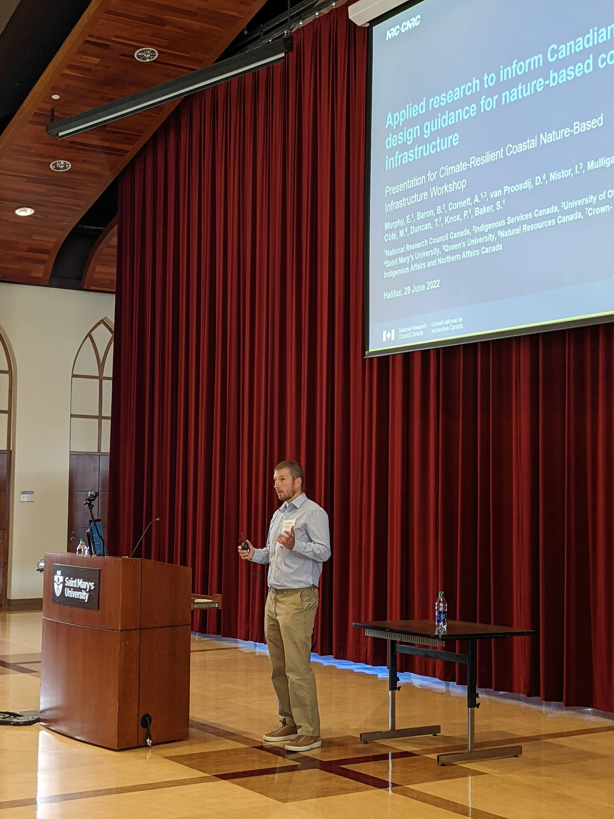 From June 26-30, TransCoastal Adaptations hosted a combined event in collaboration with the National Research Council and Coastal Zone Canada’s Cold Regions Living Shorelines Community of Practice. The Nature-Based Infrastructure for Coastal Resilience and Risk Reduction Symposium and the Climate-Resilient Coastal Nature-Based Infrastructure Workshop connected practitioners, coastal engineers, natural and social scientists, professors, students, planners, politicians, and Indigenous groups. Attendees came from across Canada and the United States to network and share the latest research in coastal and estuarine science.