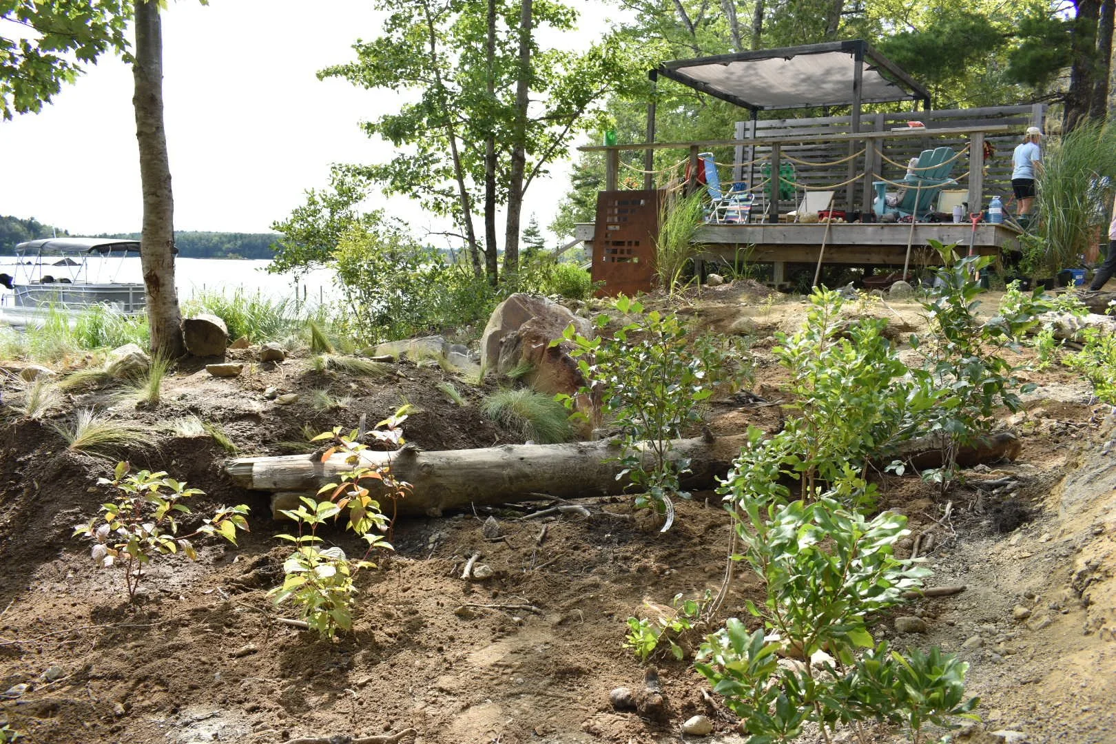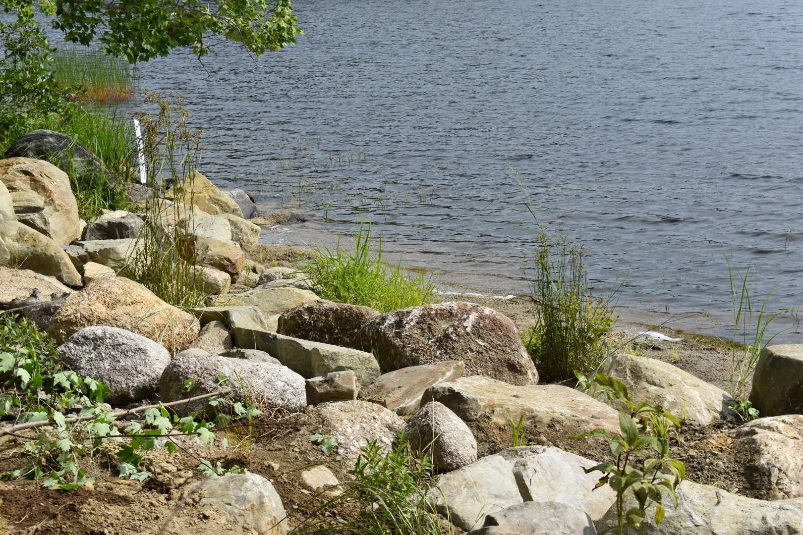 The rock wall was dismantled, and the rocks were placed throughout the riparian zone in a manner that reflected the neighbouring natural shoreline.