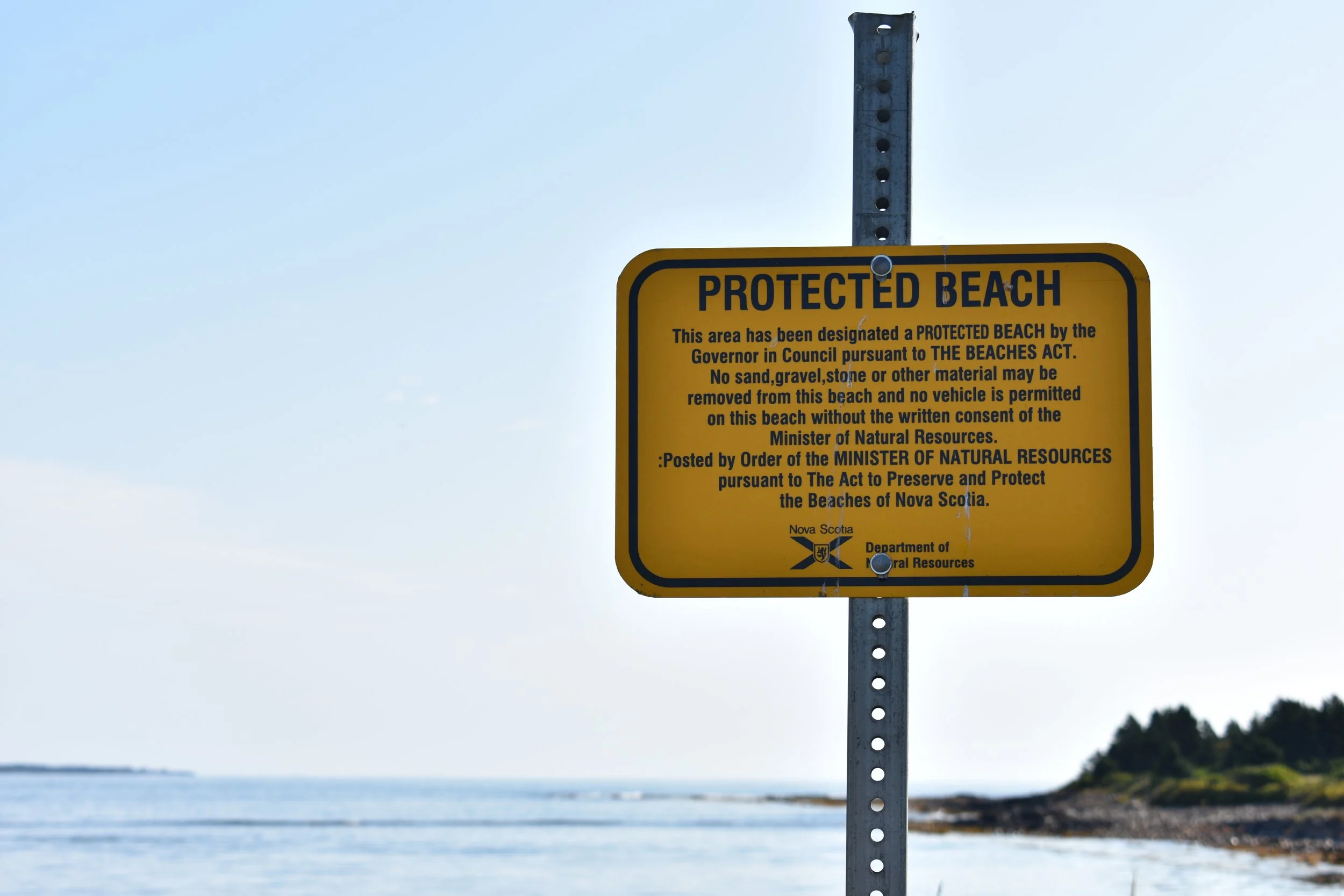 Protected beach signage provided by the Department of Natural Resources NS.